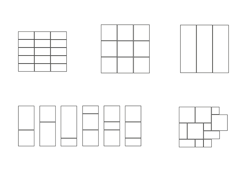 I moduli di rivestimento possono essere variabili in altezza e abbinabili a piacimento: posso infatti creare una parete da 300 cm in altezza nei seguenti modi: