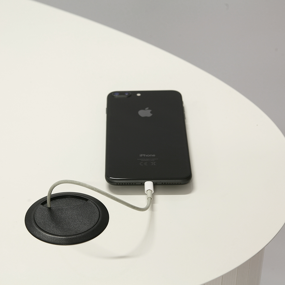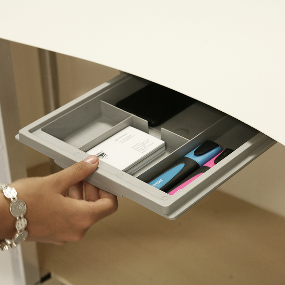 - Cassetto e bocchetta passacavo di serie