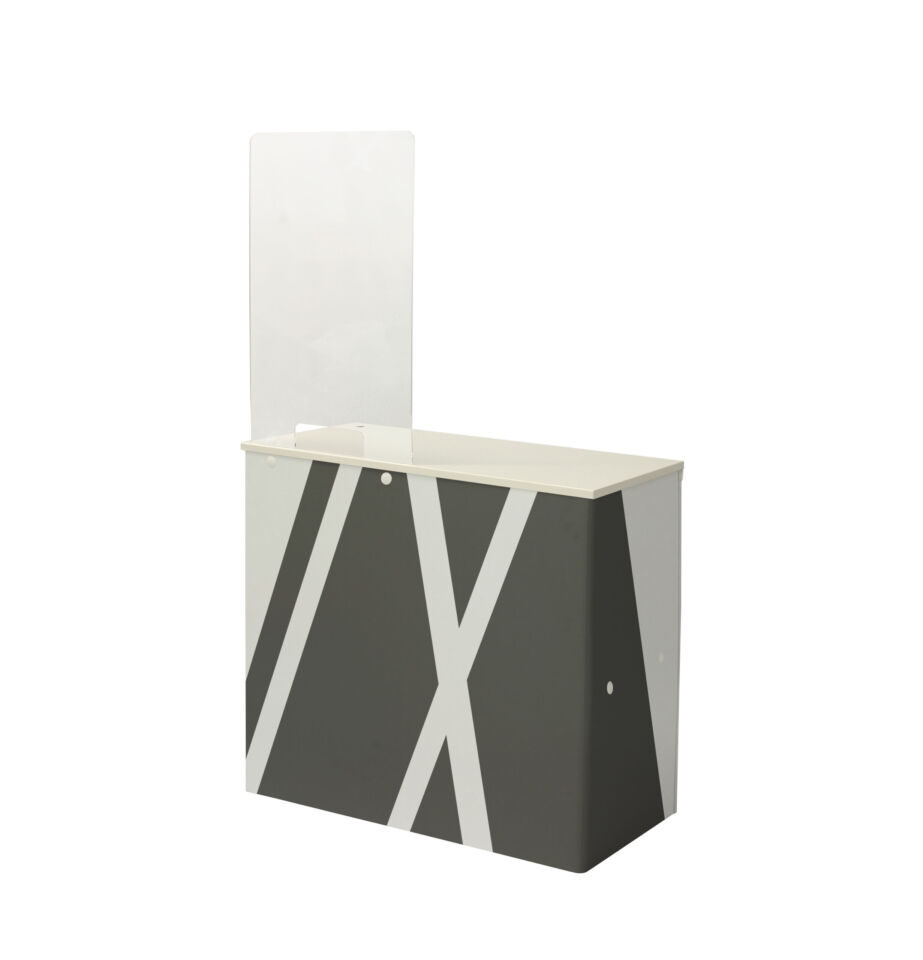 Un vero e proprio desk reception modulare e portatile. E’ possibile agganciare svariati moduli creando di volta in volta il desk reception desiderato. Puoi unirlo anche allo Scudo.